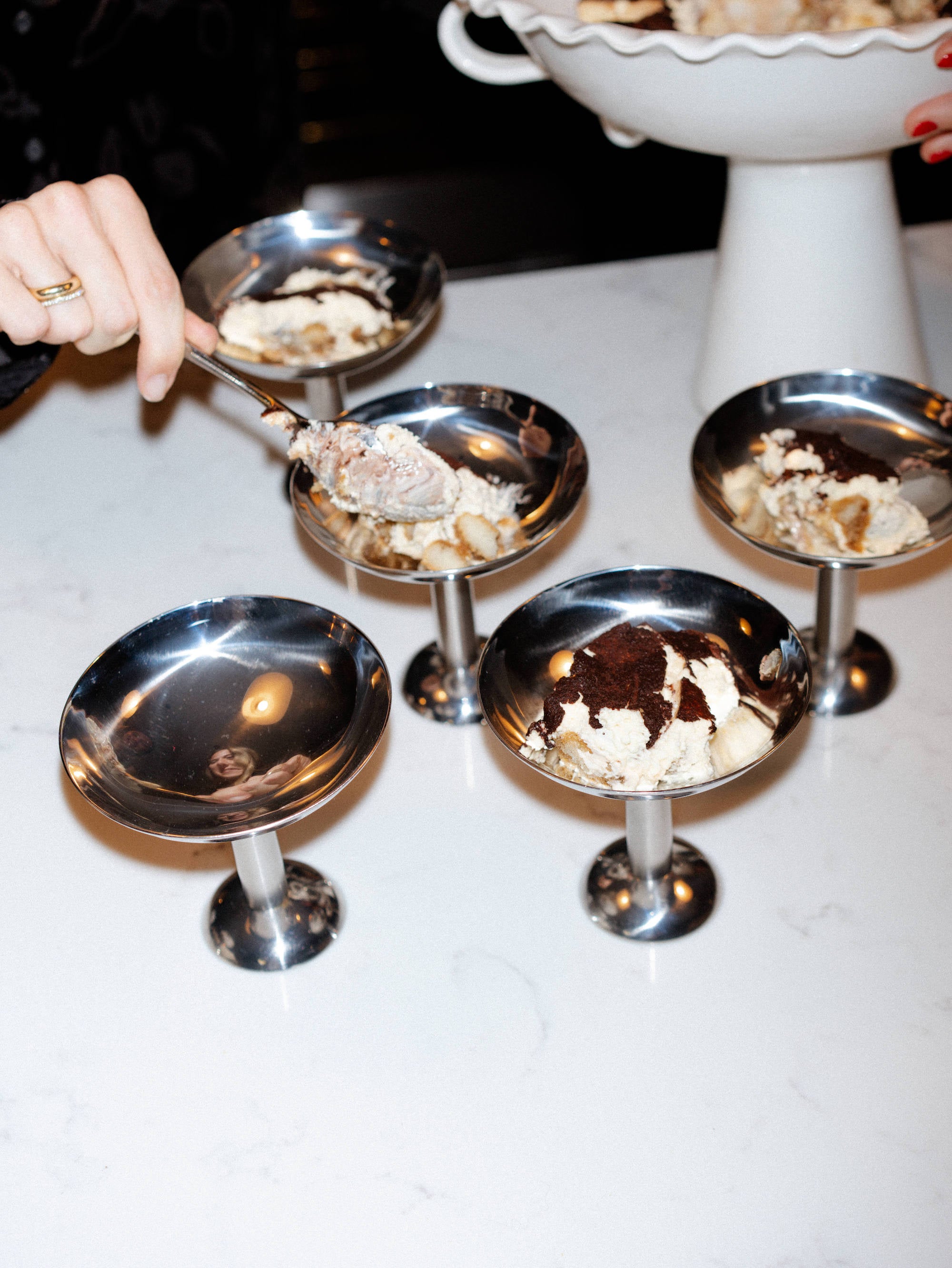 Silk pyjamas, and sheer velvet separates paired with flowing velvet robes; provided the perfect attire for the evening at home. To finish, the founders’ homemade tiramasu and a eventful tarot card reading.
