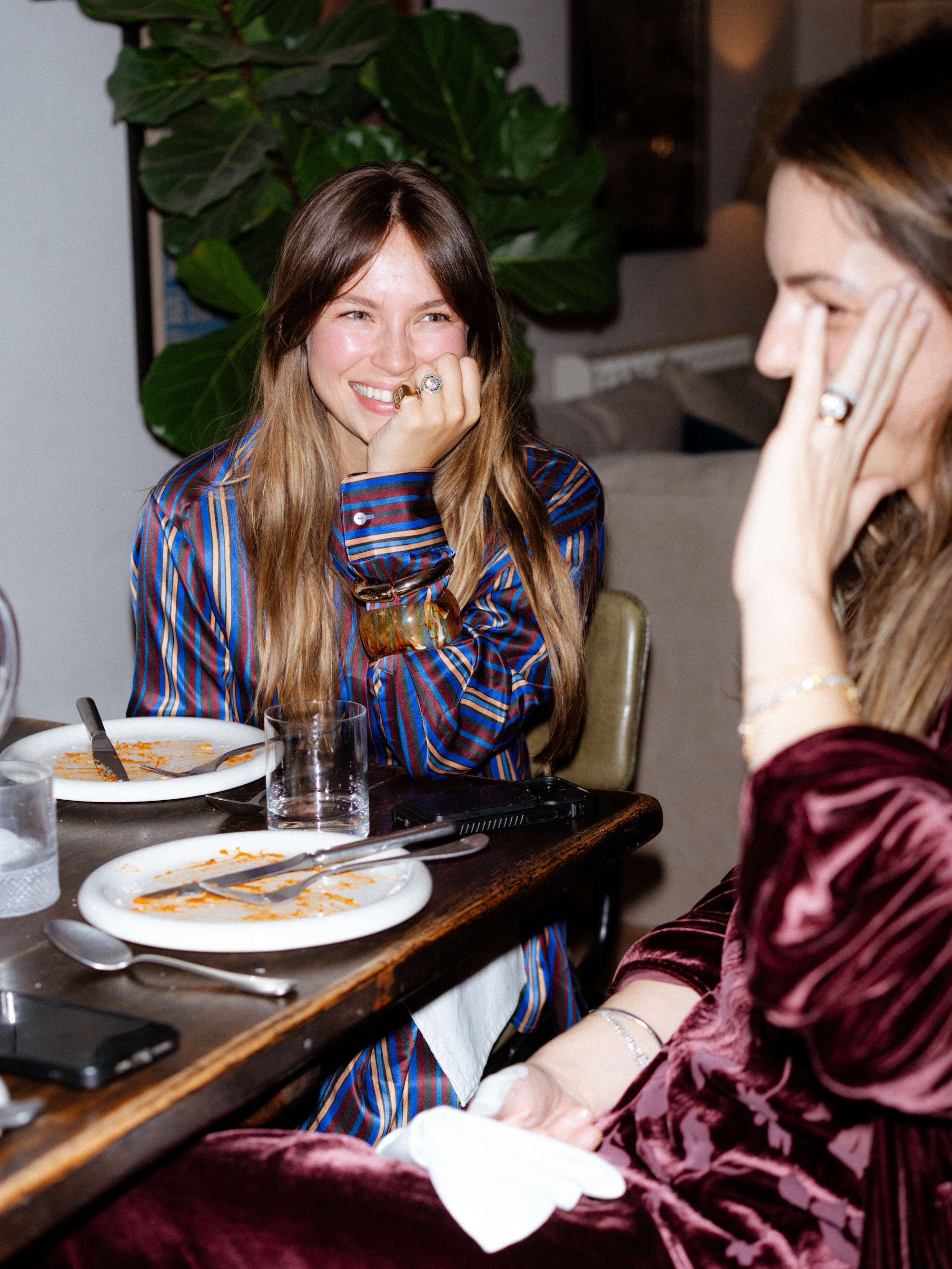 To celebrate the launch of the new winter collection, our founder Poppy hosted an intimate dinner last week at home. Friends of the brand gathered for the evening, wearing new pieces from the collection. Martinis were mixed, extra dirty, tomato vodka pasta was served with heaps of parmesan.