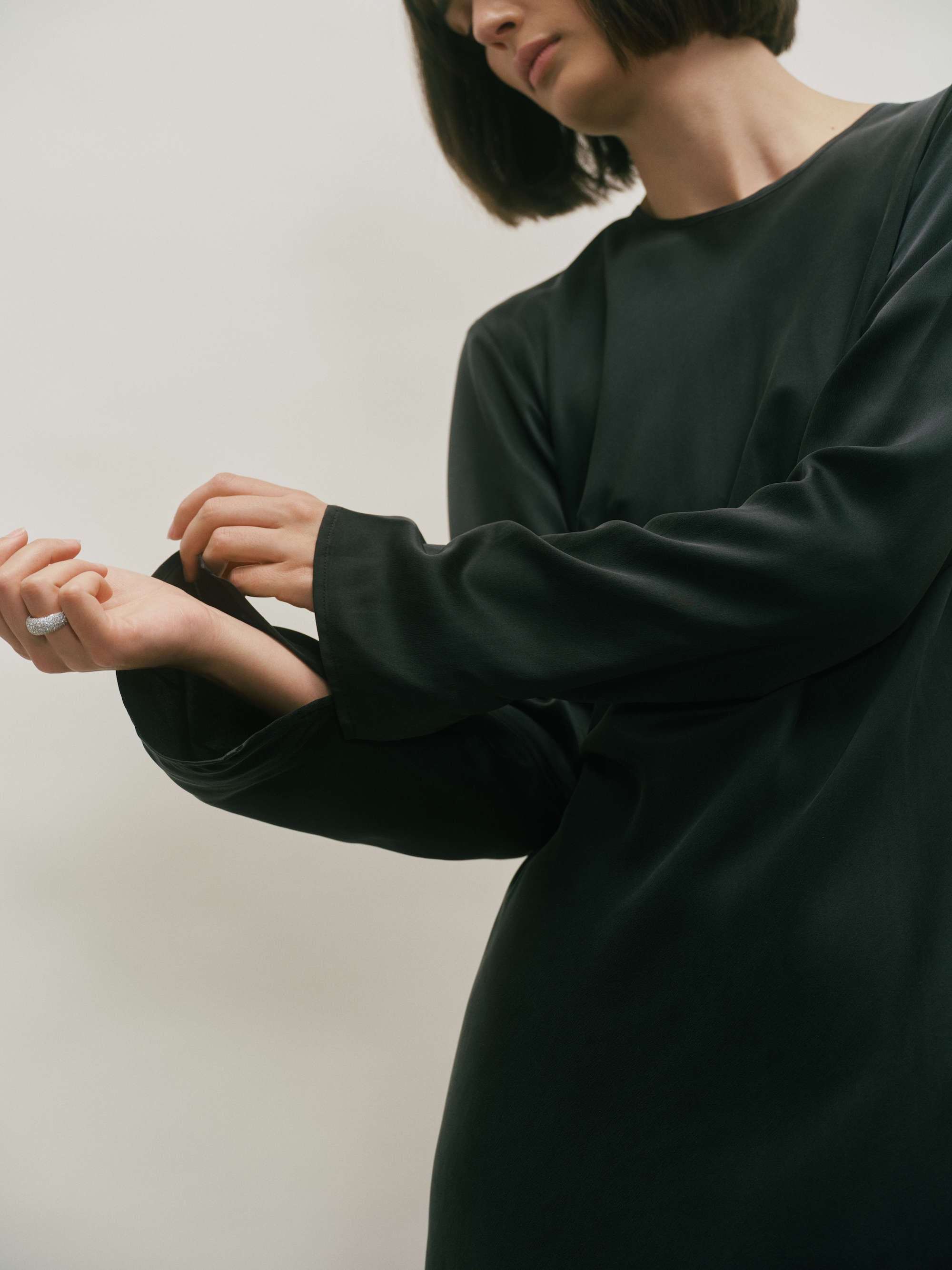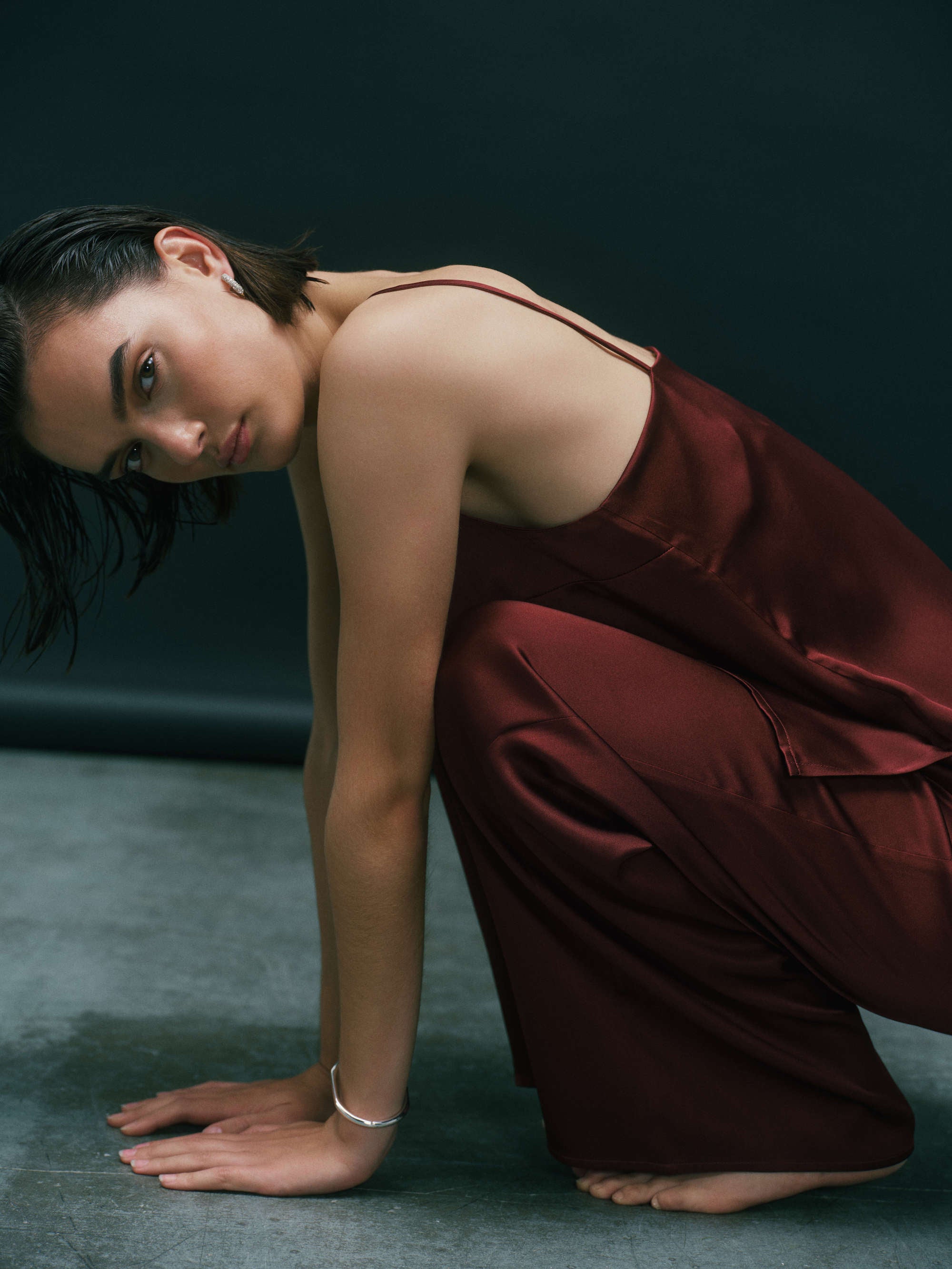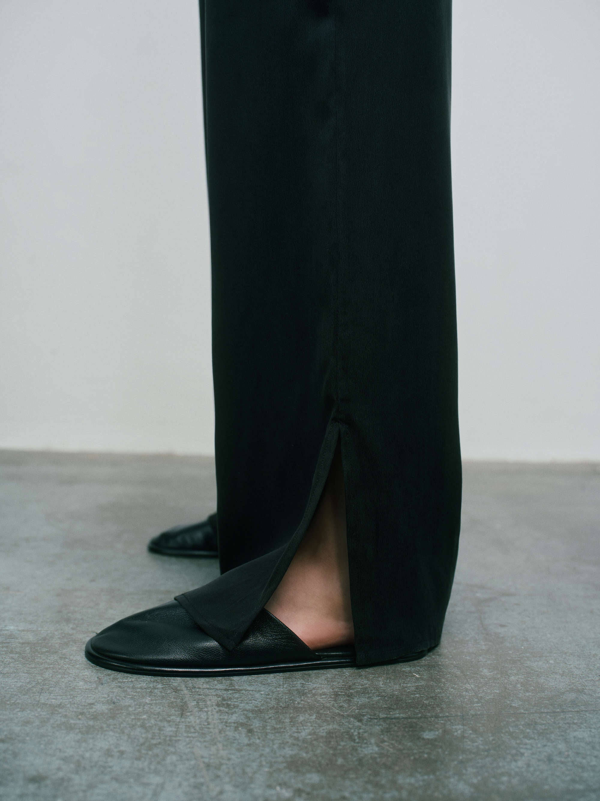 Charcoal cashmere is the ultimate in off-duty loungewear for the winter months, paired with core black silks.