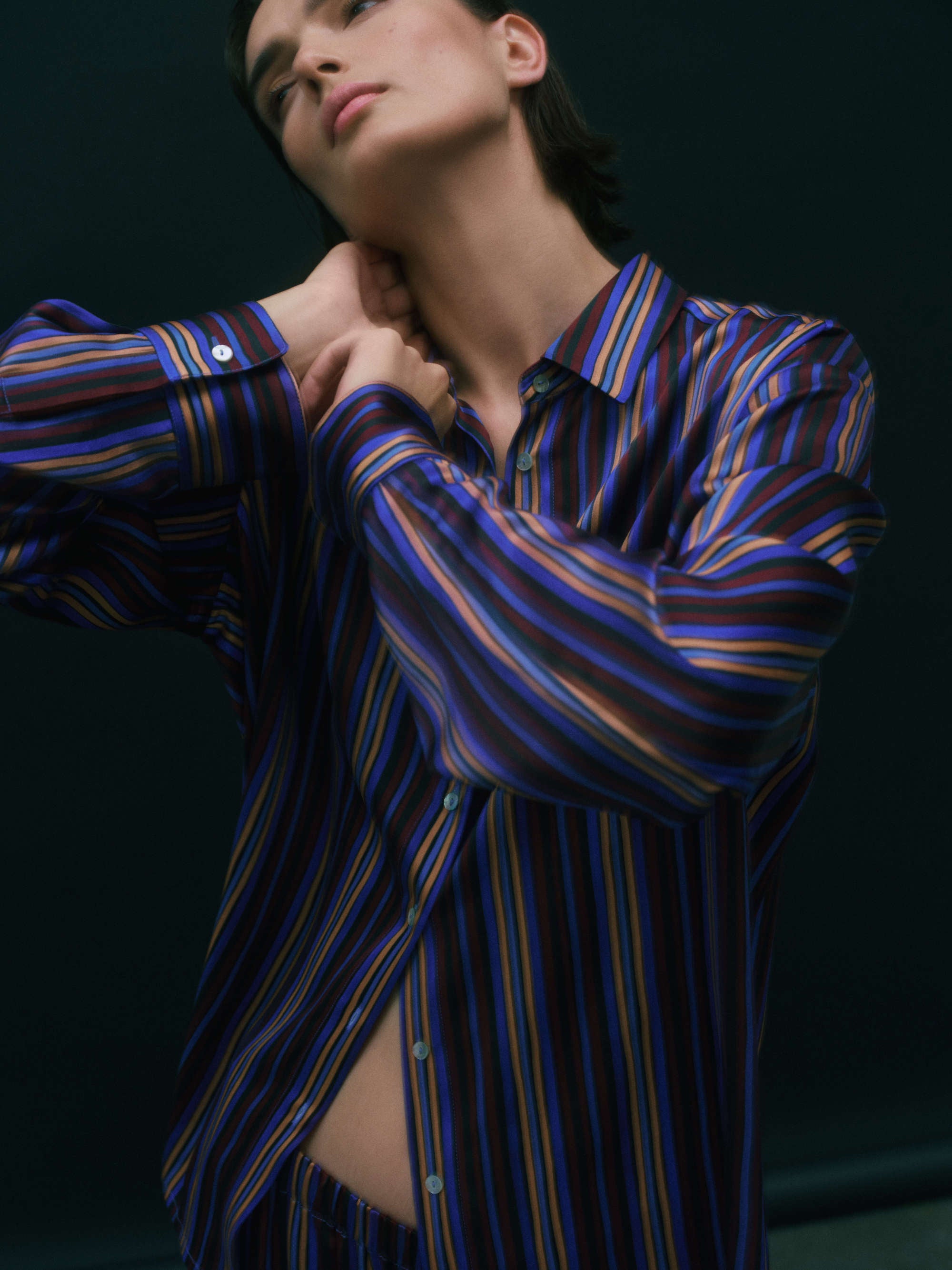 PJ sets in painted stripes and surreal-scapes offer luxe sets for sleep or lounge.