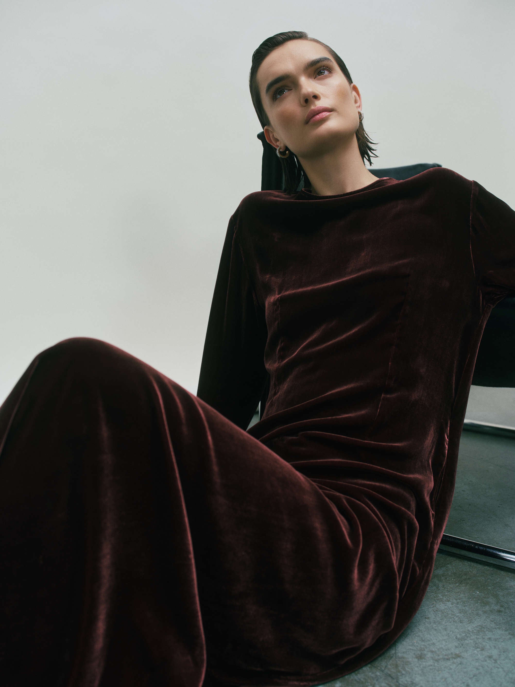Crafted from a timeless black sandwashed silk charmeuse, the Salina dress features a slim minimalist silhouette, elevated in the elongated sleeves and side-split hem. The Salina dress is the ultimate elegant evening dress that will become an evening go-to year round.